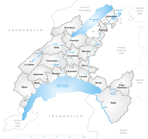 Vuodesta 1803 lähtien Vauden kantoni on jaettu 19 piiriin: